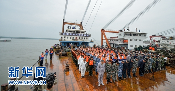 哀悼遇難者活動(dòng)持續(xù)了三分鐘,隨后,救援人員繼續(xù)投入工作,盡全力搜尋遇難者。目前,“東方之星”遇難者人數(shù)已升至431人,有14人生還,仍有11人下落不明,遇難者善后工作正在進(jìn)行。