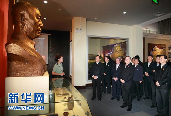 ????9月27日,全國人大常委會副委員長、中央代表團(tuán)副團(tuán)長艾力更·依明巴海率三分團(tuán)在兵團(tuán)第八師石河子市、昌吉回族自治州看望慰問當(dāng)?shù)馗髯甯刹咳罕?。這是艾力更·依明巴海在兵團(tuán)第八師石河子市參觀新疆兵團(tuán)軍墾博物館。新華社記者 丁海濤 攝