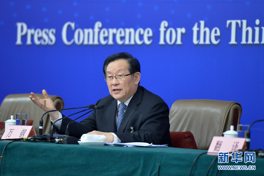 ????? 十二屆全國(guó)人大三次會(huì)議新聞中心于3月11日10時(shí)45分舉行記者會(huì),邀請(qǐng)科技部部長(zhǎng)萬鋼就科技改革與發(fā)展回答中外記者提問。圖為萬鋼回答記者提問。新華網(wǎng)/中國(guó)政府網(wǎng) 郭小天 攝