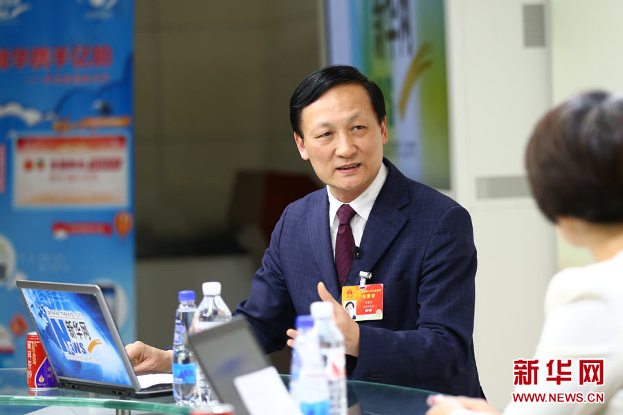 2015年3月13日,全國人大代表,北京大學第三醫(yī)院骨科主任及脊柱外科研究所所長劉忠軍做客新華會客廳。圖為劉忠軍與主持人交談。新華網(wǎng) 李江 攝