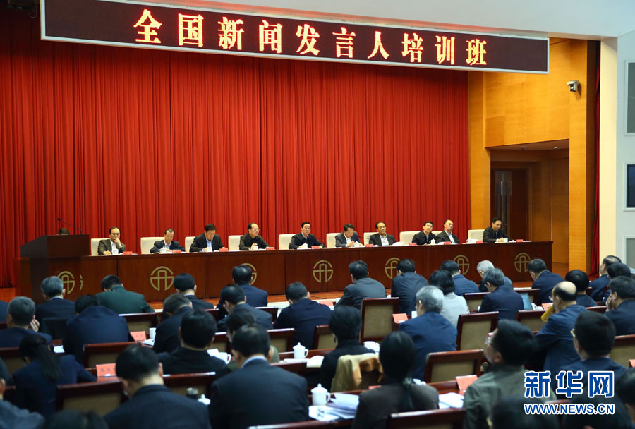 ???? 3月28日,中共中央政治局委員、中央書記處書記、中宣部部長劉奇葆在北京與全國新聞發(fā)言人培訓班學員座談。 新華社記者丁海濤攝