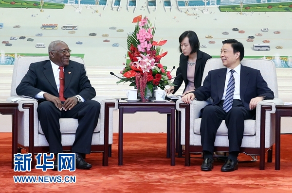 6月27日,中共中央政治局委員、國家副主席李源潮在北京會見來華通報古共七大情況的古共中央第一書記勞爾·卡斯特羅特使巴爾德斯。 新華社記者 姚大偉 攝