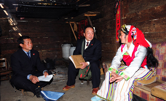 與此同時,江德華還虛心向當?shù)馗髯迦罕妼W習,學會了獨龍族、怒族、傈僳族和藏族四種少數(shù)民族語言,在做好檢察官本職工作之外,他還經(jīng)常擔當起翻譯的角色。憑借一股韌勁和鉆勁,江德華成為了新中國成立以來的第一個獨龍族檢察官,成為了貢山縣檢察院的辦案能手,成了村里人的驕傲。