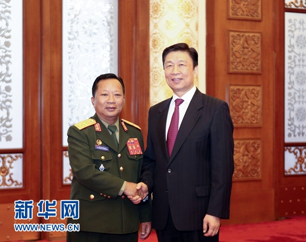 7月19日,中共中央政治局委員、國(guó)家副主席李源潮在北京會(huì)見(jiàn)老撾人民革命黨中央政治局委員、國(guó)防部長(zhǎng)占沙蒙。 新華社記者丁林?jǐn)z