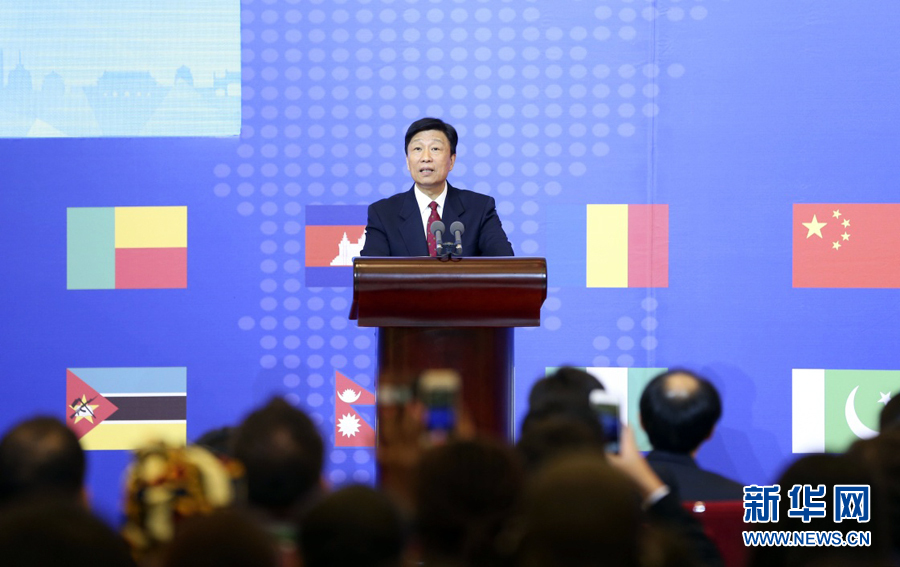 ??? 7月28日,首屆亞非青年聯(lián)歡節(jié)在北京人民大會(huì)堂開幕,國家副主席李源潮出席并致辭。新華社記者丁林?jǐn)z