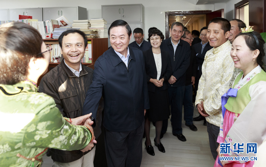 10月8日,中共中央政治局委員、中央書記處書記、中宣部部長(zhǎng)劉奇葆到作家出版集團(tuán)調(diào)研文學(xué)期刊發(fā)展情況。 新華社記者丁海濤攝