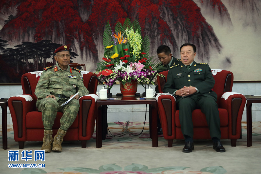 12月5日,中央軍委副主席范長(zhǎng)龍?jiān)诒本┌艘淮髽菚?huì)見(jiàn)來(lái)訪的吉布提軍隊(duì)總參謀長(zhǎng)扎卡里亞。 新華社記者 琚振華 攝