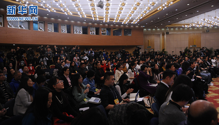 ??? 十二屆全國人大四次會議新聞中心于3月12日(星期六)14時30分在梅地亞中心多功能廳舉行記者會,邀請國務(wù)院國有資產(chǎn)監(jiān)督管理委員會主任肖亞慶、副主任張喜武、副主任黃丹華和副秘書長、新聞發(fā)言人彭華崗就“國企改革”的相關(guān)問題回答中外記者的提問。圖為座無虛席的記者會現(xiàn)場。新華網(wǎng)/中國政府網(wǎng) 陳杰 攝