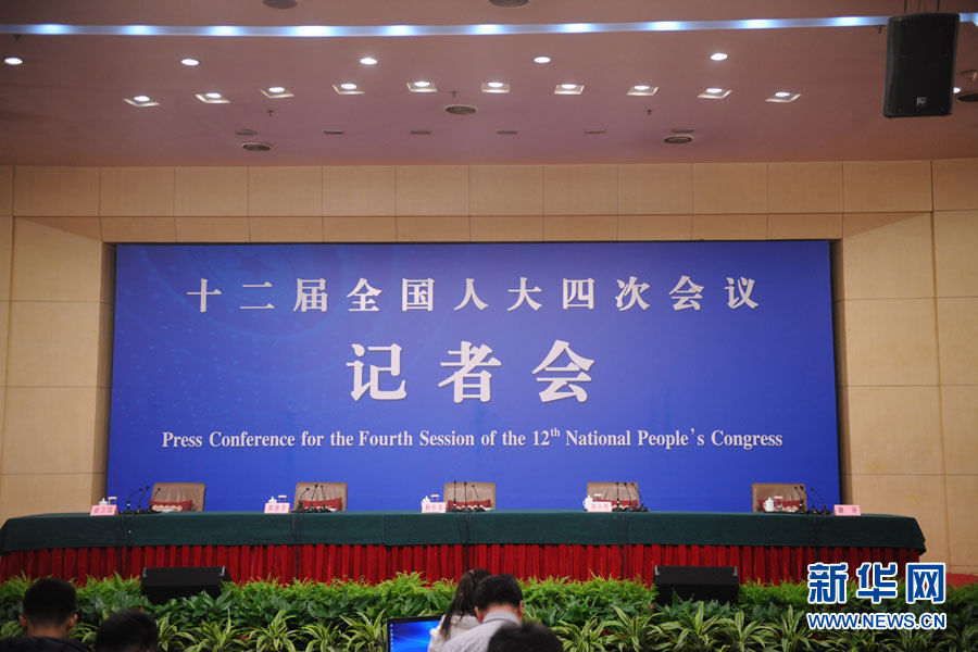 十二屆全國人大四次會(huì)議新聞中心于3月14日(星期一)10時(shí)在梅地亞中心多功能廳舉行記者會(huì),邀請交通運(yùn)輸部部長楊傳堂、交通運(yùn)輸部運(yùn)輸服務(wù)司司長劉小明、北京交通發(fā)展研究中心主任郭繼孚就“深化出租汽車改革與發(fā)展”的相關(guān)問題回答中外記者的提問。圖為記者會(huì)現(xiàn)場,記者會(huì)即將開始。新華網(wǎng)/中國政府網(wǎng) 陳杰 攝