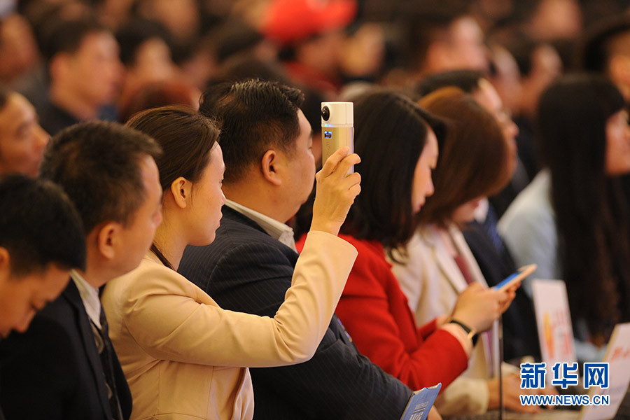 3月16日上午,國務(wù)院總理李克強(qiáng)在人民大會堂三樓金色大廳會見采訪十二屆全國人大四次會議的中外記者并回答記者提出的問題。圖為新華網(wǎng)VR報道總理記者會。新華網(wǎng)/中國政府網(wǎng) 陳杰攝
