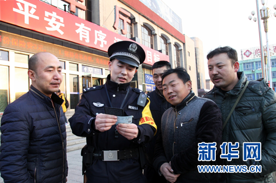 2月14日,侯馬站派出所民警為進出站旅客提供幫助。新華網(wǎng) 田明 攝