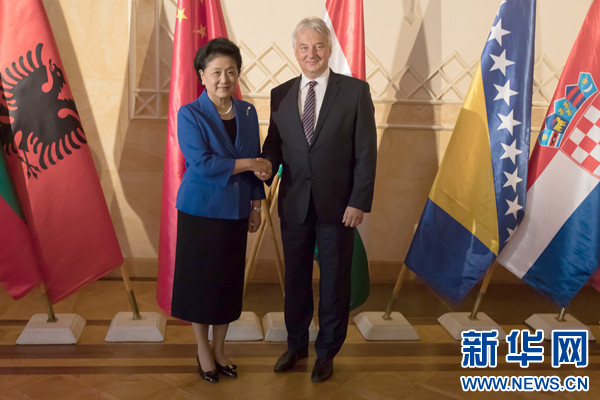 6月19日,在匈牙利布達(dá)佩斯,中國(guó)國(guó)務(wù)院副總理劉延?xùn)|(左)會(huì)見匈牙利副總理謝姆延。 新華社發(fā)(弗爾季·奧蒂洛攝)