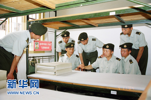 連隊(duì)一樓排房的門口,掛著“李向群班”的巨大標(biāo)志。走進(jìn)排房,英雄生前睡過的床鋪,還整理得整整齊齊。班上的戰(zhàn)士每天晚上睡覺前把英雄的被子打開,早上起床再疊好,就像李向群從未離開一樣。