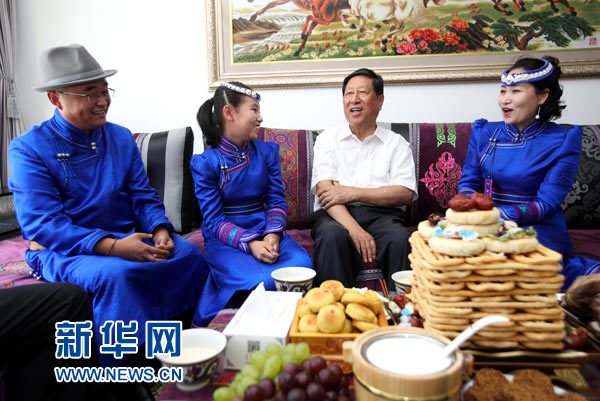 這是張平在蒙古族居民哈斯戈日樂(右一)家詳細(xì)詢問全家工作和生活情況。新華社記者 鄧華 攝