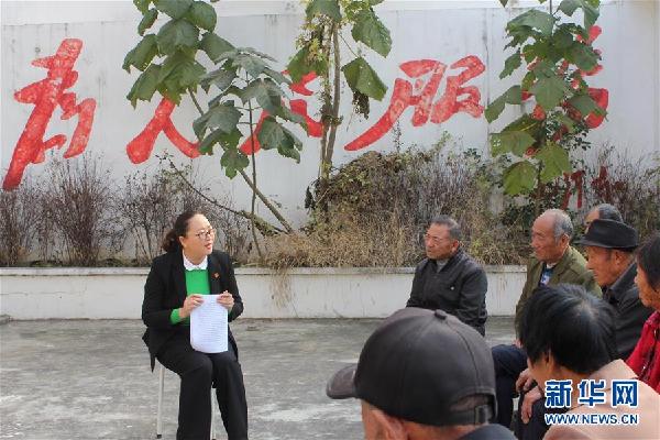 十九大代表、山東省棗莊市山亭區(qū)鳧城鎮(zhèn)千佛崖村黨支部書記李晨(左一)在村委會宣講十九大精神(10月26日攝)。新華社發(fā)(宋偉攝)
