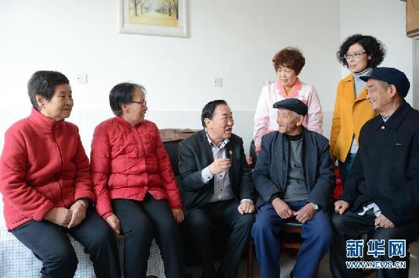 11月2日,十九大代表亓慶良在醫(yī)院養(yǎng)老中心與老人們交流參加十九大的心得體會(huì)。新華社發(fā)(陳穎攝)