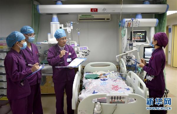 林明祥(右)在為患兒檢查(10月31日攝)。新華社記者盧漢欣攝
