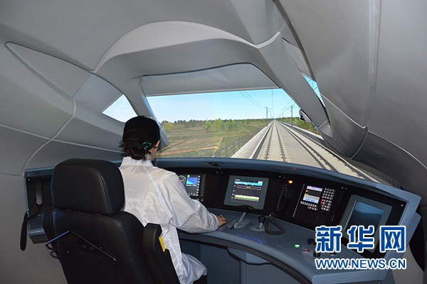 在中國(guó)通號(hào)CTCS-3實(shí)驗(yàn)室體驗(yàn)高鐵貼地“飛行”。據(jù)工作人員介紹,該實(shí)驗(yàn)室采用半實(shí)物仿真建模方法,通過上萬(wàn)公里高鐵工程的現(xiàn)場(chǎng)驗(yàn)證,仿真平臺(tái)的可信度達(dá)到國(guó)際一流。新華網(wǎng)陳淑君攝