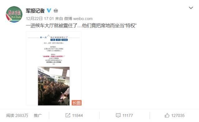 @你看鄰居家的:我在柳州站見(jiàn)過(guò),大概是幾百名士兵退役,車還沒(méi)到,都把東西碼好,排排坐著,在地上等車。那一刻我才理解,他們不是讓座這么簡(jiǎn)單,他們是根本沒(méi)想過(guò)要坐。