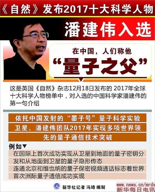▲圖表:《自然》發(fā)布2017十大科學(xué)人物,潘建偉入選。