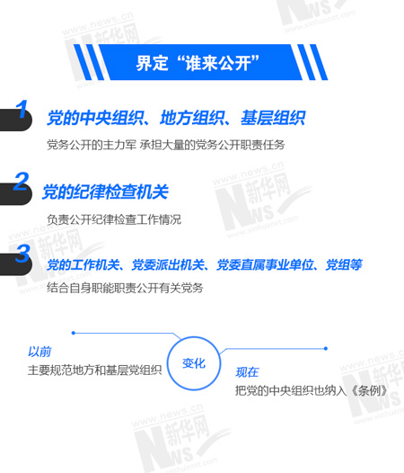 《條例》明確規(guī)定了公開范圍,主要包括向社會公開,在全黨公開,在本地區(qū)、本部門、本單位公開,對特定黨的組織、黨員和群眾公開。并規(guī)定了黨的組織應當根據(jù)《條例》規(guī)定的黨務公開內容和范圍,編制黨務公開目錄,并根據(jù)職責任務要求動態(tài)調整。