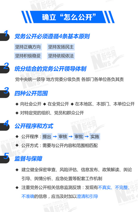 為了保證黨務公開的各項要求落到實處,《條例》要求建立健全保密審查、風險評估、信息發(fā)布、政策解讀、應急處置等配套保障工作機制,注重黨務公開相關信息監(jiān)測反饋,規(guī)定了工作報告、考核評議、督促檢查和責任追究制度。