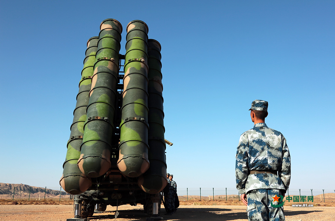 空軍“藍(lán)盾-2017S”金盾牌比武競(jìng)賽,空軍地導(dǎo)某旅導(dǎo)彈快速起豎,準(zhǔn)備戰(zhàn)斗。李明 攝影
