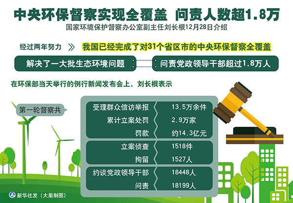 圖表:中央環(huán)保督察實現(xiàn)全覆蓋 問責人數(shù)超1.8萬 新華社發(fā) 大巢制圖