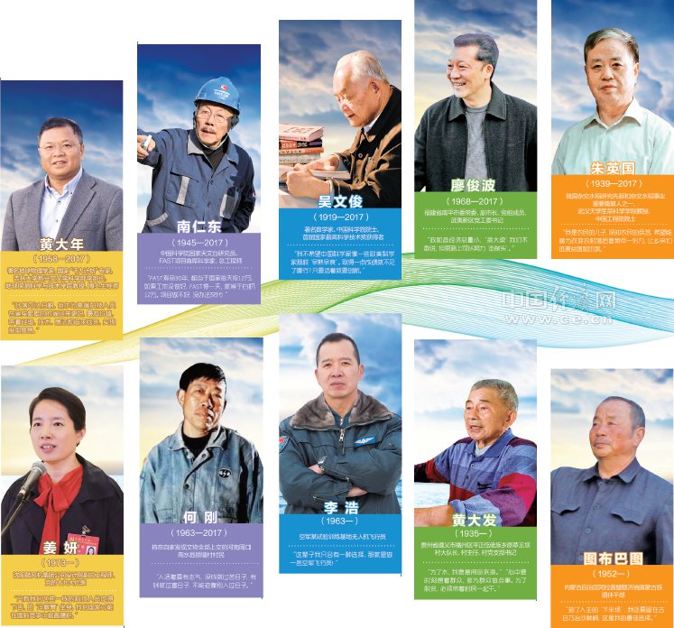 在2017年即將離我們遠(yuǎn)去的時(shí)刻,請(qǐng)讓我們用心記住他們的名字與面龐:黃大年、南仁東、吳文俊、廖俊波、朱英國(guó)、姜妍、何剛、李浩、黃大發(fā)、圖布巴圖……