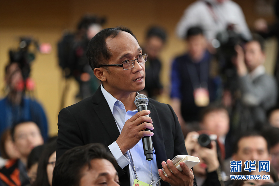 十二屆全國人大五次會議新聞中心于3月8日(星期三)10時在梅地亞中心多功能廳舉行記者會,邀請外交部部長王毅就“中國的外交政策和對外關系”的相關問題回答中外記者的提問。圖為菲律賓通訊社記者提問。新華網(wǎng)/中國政府網(wǎng) 翟子赫 攝