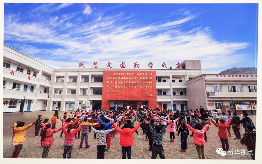 蘆山隆興中心校寬闊整潔,這是孩子們?cè)诿利惖男@里做操。