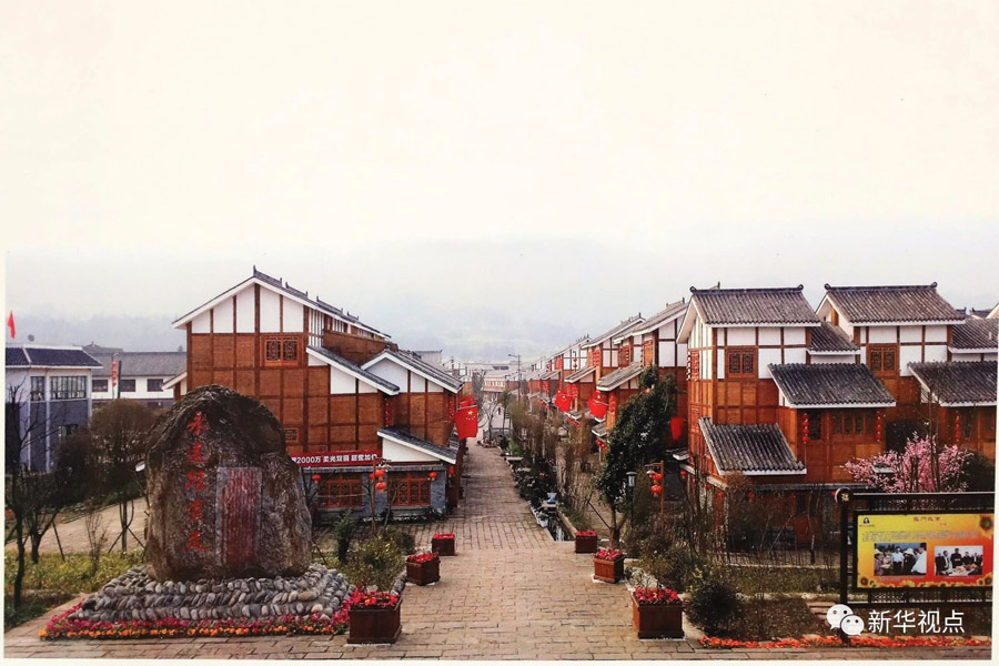 震中青龍場(chǎng)村,一排排小樓整齊排列,村口矗立的感恩石上鐫刻著“永遠(yuǎn)跟黨走”5個(gè)大字。
