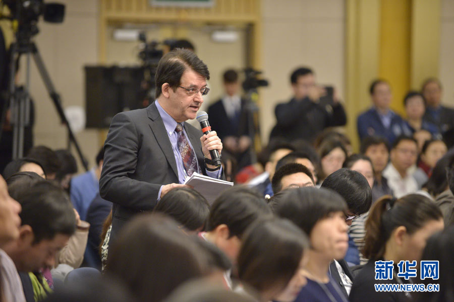 3月10日,十二屆全國人大五次會(huì)議新聞中心舉行記者會(huì),邀請(qǐng)中國人民銀行行長周小川、副行長易綱、副行長兼國家外匯管理局局長潘功勝、副行長范一飛就“金融改革與發(fā)展”的相關(guān)問題回答中外記者的提問。圖為彭博新聞社記者提問。新華網(wǎng)/中國政府網(wǎng) 王健 攝