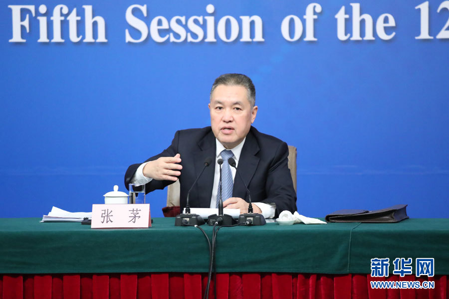 3月10日,十二屆全國(guó)人大五次會(huì)議新聞中心舉行記者會(huì),邀請(qǐng)國(guó)家工商行政管理總局局長(zhǎng)張茅就“深化商事制度改革”的相關(guān)問題回答中外記者的提問。圖為張茅回答記者提問。新華網(wǎng)/中國(guó)政府網(wǎng) 孫韜 攝?