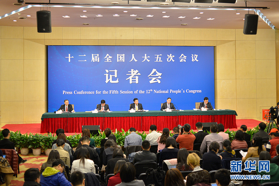 3月11日,十二屆全國(guó)人大五次會(huì)議新聞中心舉行記者會(huì),邀請(qǐng)工業(yè)和信息化部部長(zhǎng)苗圩、副部長(zhǎng)辛國(guó)斌和總工程師、新聞發(fā)言人張峰就“推進(jìn)實(shí)施‘中國(guó)制造2025’”的相關(guān)問(wèn)題回答中外記者的提問(wèn)。圖為記者會(huì)現(xiàn)場(chǎng)。新華網(wǎng)/中國(guó)政府網(wǎng) 孫韜 攝