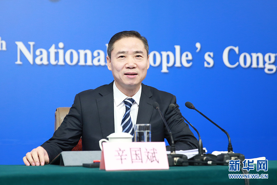 3月11日,十二屆全國人大五次會(huì)議新聞中心舉行記者會(huì),邀請(qǐng)工業(yè)和信息化部部長苗圩、副部長辛國斌和總工程師、新聞發(fā)言人張峰就“推進(jìn)實(shí)施‘中國制造2025’”的相關(guān)問題回答中外記者的提問。圖為工業(yè)和信息化部副部長辛國斌。新華網(wǎng)/中國政府網(wǎng)?翟子赫 攝?