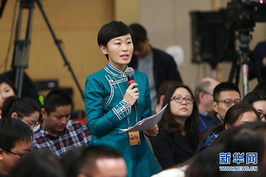 3月11日,十二屆全國人大五次會議新聞中心舉行記者會,邀請工業(yè)和信息化部部長苗圩、副部長辛國斌和總工程師、新聞發(fā)言人張峰就“推進實施‘中國制造2025’”的相關問題回答中外記者的提問。圖為內蒙古廣播電視臺記者提問。新華網(wǎng)/中國政府網(wǎng) 傅義洲 攝