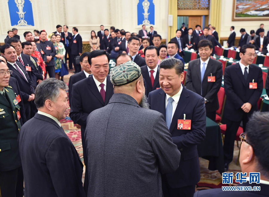 2017年3月10日,習(xí)近平在新疆代表團(tuán)參加審議時說,要全面貫徹黨的民族政策,高舉各民族大團(tuán)結(jié)旗幟,引導(dǎo)各族群眾增強(qiáng)對偉大祖國、中華民族、中華文化、中國共產(chǎn)黨、中國特色社會主義的認(rèn)同,像愛護(hù)自己的眼睛一樣愛護(hù)民族團(tuán)結(jié),像珍視自己的生命一樣珍視民族團(tuán)結(jié),像石榴籽那樣緊緊抱在一起。