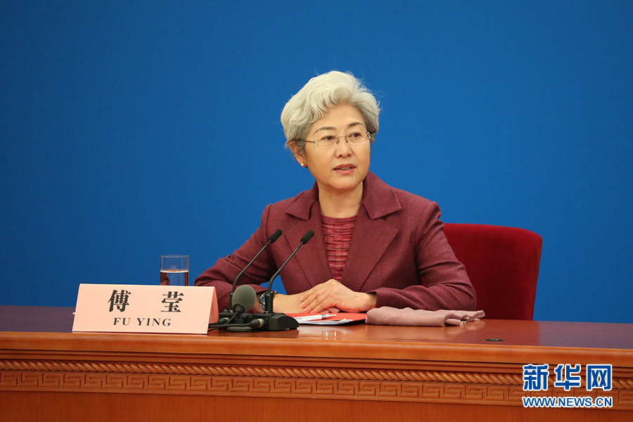 3月15日上午,國(guó)務(wù)院總理李克強(qiáng)在人民大會(huì)堂三樓金色大廳會(huì)見(jiàn)采訪十二屆全國(guó)人大五次會(huì)議的中外記者并回答記者提出的問(wèn)題。圖為記者會(huì)主持人傅瑩。新華網(wǎng)/中國(guó)政府網(wǎng) 翟子赫 攝