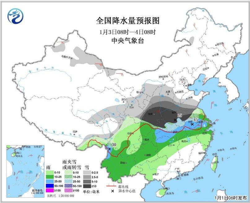 中央氣象臺(tái)1日清晨發(fā)布天氣公報(bào),今日全國(guó)范圍降水較弱,2日至4日中國(guó)中東部將出現(xiàn)大范圍雨雪天氣。