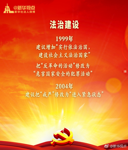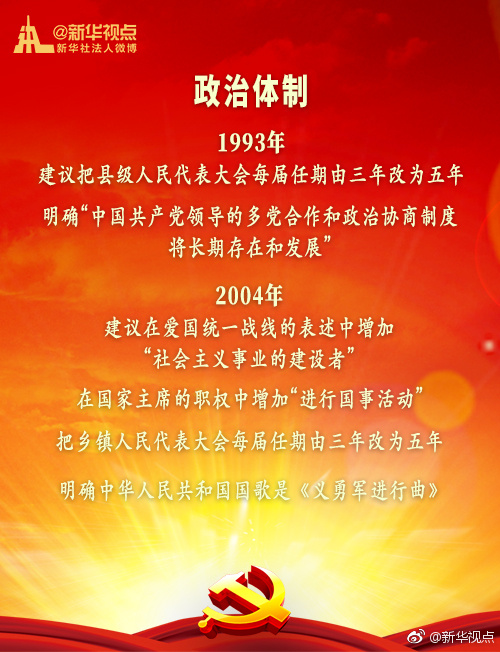 新華網(wǎng)北京1月20日電 黨的十九屆二中全會1月18日至19日在京召開,會議審議通過了《中共中央關(guān)于修改憲法部分內(nèi)容的建議》。現(xiàn)行“八二憲法”公布實施后,根據(jù)我國改革開放和社會主義現(xiàn)代化建設(shè)的實踐與發(fā)展,分別于1988年、1993年、1999年、2004年進行了4次修改。每一次都是由黨中央向全國人大常委會提出憲法修改建議,經(jīng)過法定程序使黨的主張和人民意愿成為國家意志。(據(jù)新華視點微博)