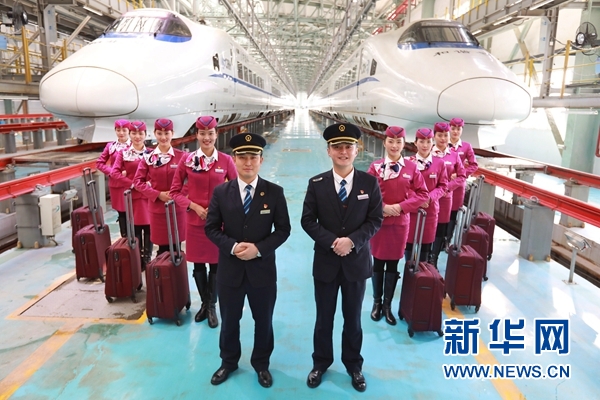 1月16日,擔任首發(fā)列車值乘工作的貴陽客運段司機和乘務員在貴陽亮相。新華社記者劉續(xù)攝