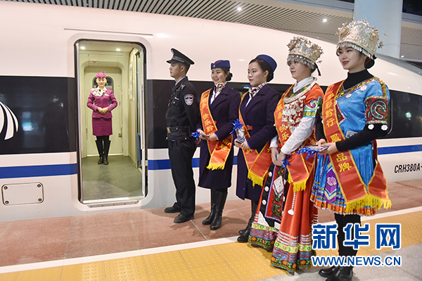 1月25日,在貴陽(yáng)北站,渝貴鐵路從貴陽(yáng)北到重慶西的D8592次首發(fā)動(dòng)車乘務(wù)員在等待旅客乘車。新華社記者 歐東衢攝