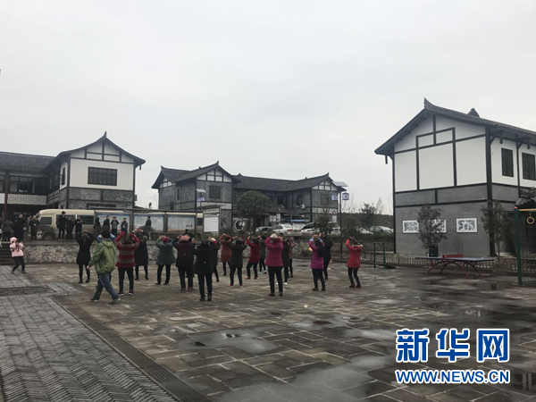 村民們在會龍村廣場跳起了歡快的廣場舞。 新華網(wǎng) 張世祥 攝