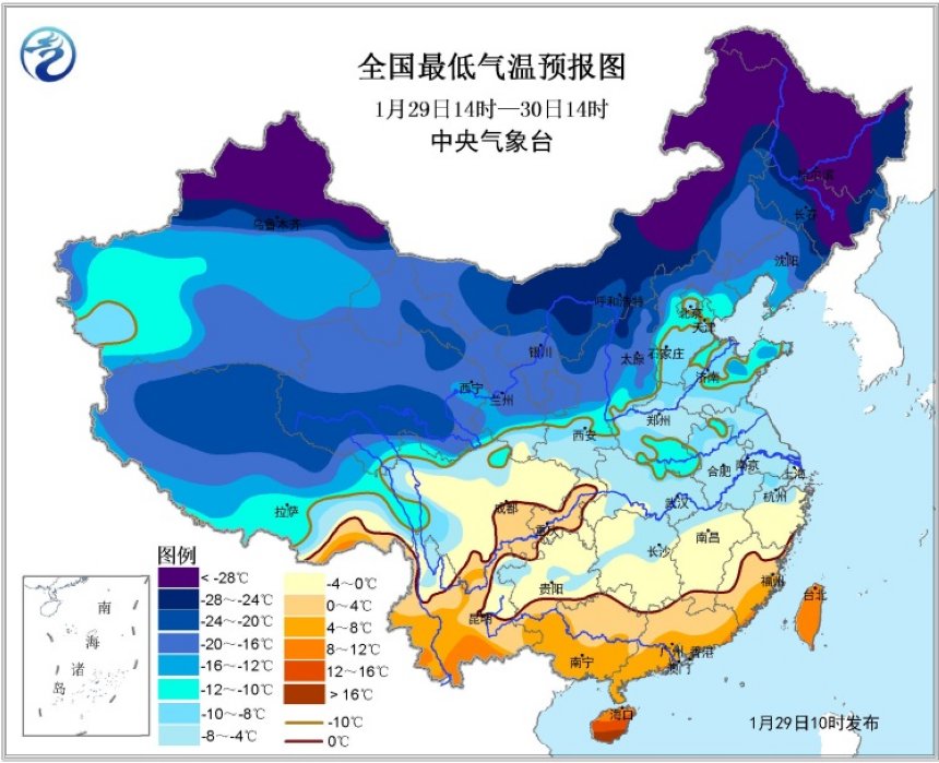 1月29日,中央氣象臺繼續(xù)發(fā)布寒潮藍色預警。根據(jù)中央氣象臺預報,預計2月5日以前,影響我國的冷空氣活動頻繁,且勢力較強,中東部大部地區(qū)氣溫較常年同期依然偏低。