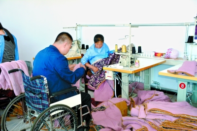 烏蘭察布市化德縣德包圖村一家“脫貧車(chē)間”里,正在幫助料理縫紉的殘疾人貧困戶王強(qiáng)(化名)高興地說(shuō):“每個(gè)‘脫貧車(chē)間’,政府都給投資15萬(wàn)元作為啟動(dòng)資金,用于購(gòu)買(mǎi)縫紉機(jī)等設(shè)備和消防器材。我們殘疾人也可以不出家門(mén)實(shí)現(xiàn)就業(yè)啦?!?/p>