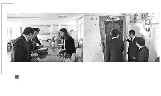 圖① 廬陽法院法官到社區(qū)調(diào)查執(zhí)行線索。圖② 廬陽法院法官上門查找被執(zhí)行人。