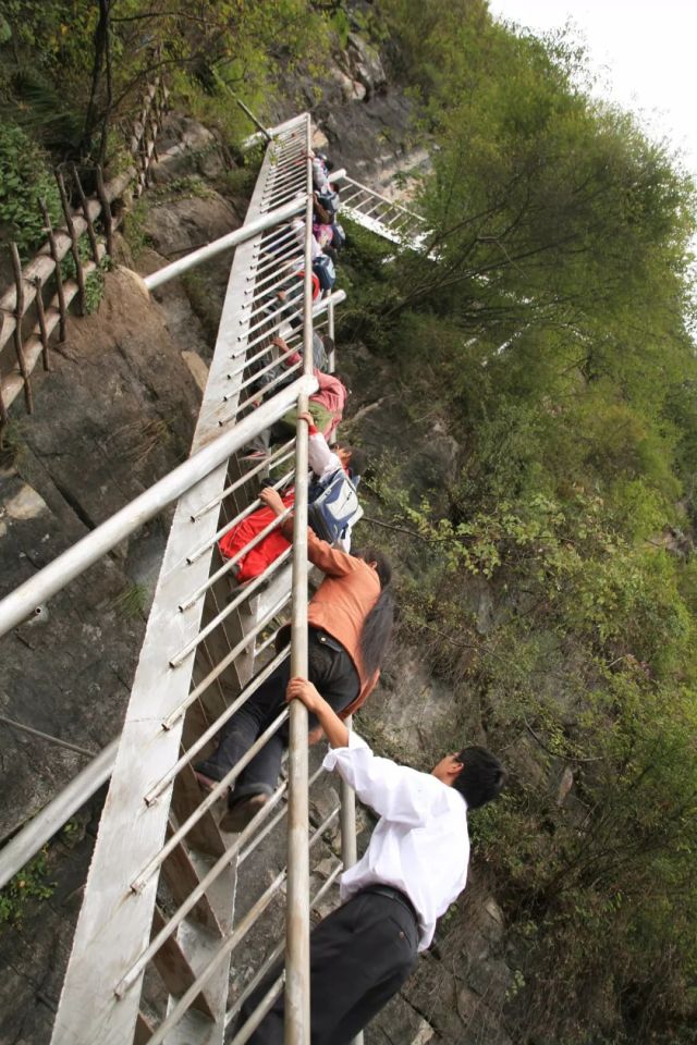 涼山州甘洛縣烏史大橋鄉(xiāng),高山上的二坪村學(xué)生懸崖上攀登鋼梯。新華社記者蔣作平攝