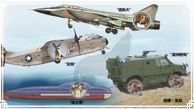 現(xiàn)代戰(zhàn)爭中,偵察通信、巡邏警衛(wèi)、搜救排爆等軍犬的傳統(tǒng)優(yōu)勢領(lǐng)域漸漸被高科技的信息化裝備所替代。不過,為了表達(dá)人類對狗的喜愛和依賴,很多武器裝備仍用“狗”或“犬”等字眼來命名。它們上天入地下海,各顯神通,爭雄斗勝,身懷絕技,發(fā)展出兵器家族中的一股“生猛”力量。