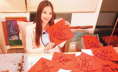 臺(tái)灣知名模特姚采穎寫春聯(lián)用于義賣